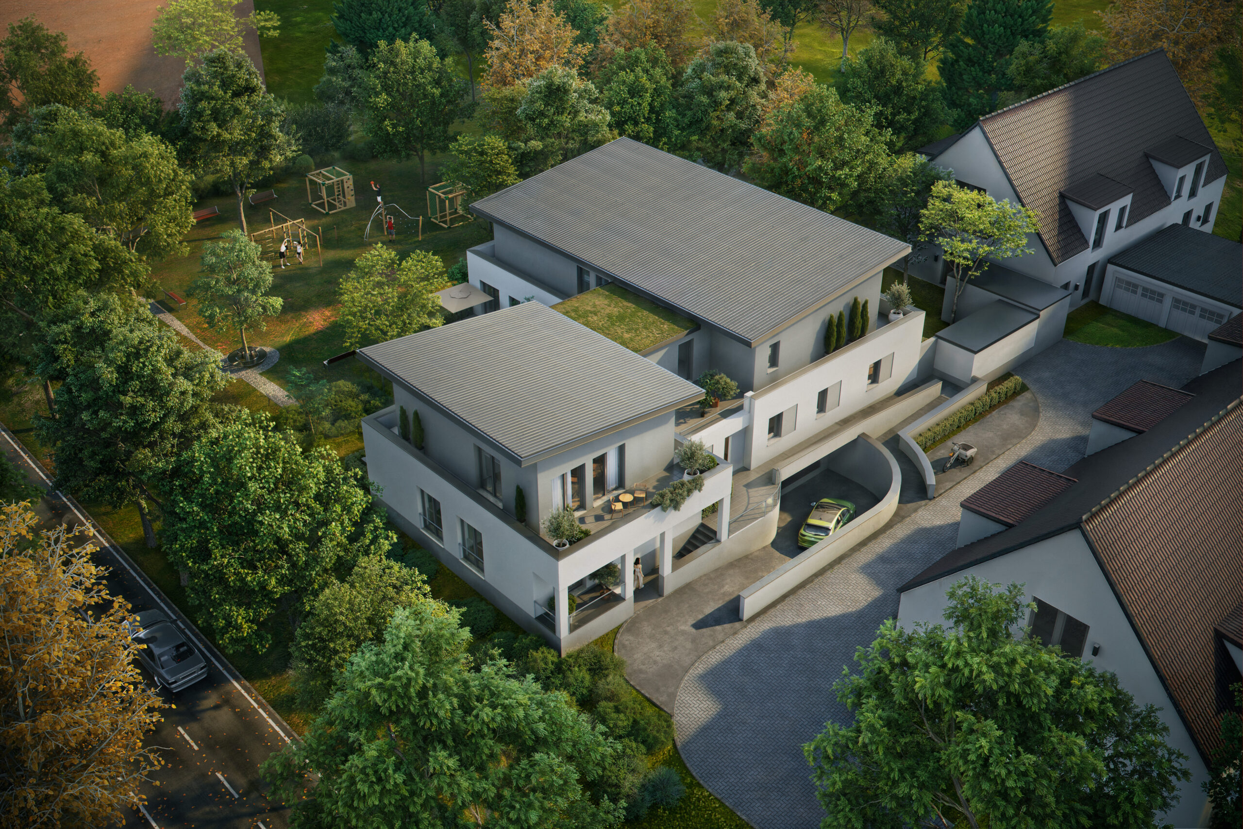 Das Baugrundstück „An der Ölmühle“ befindet sich in attraktiver Lage im Aachener Stadtteil Laurensberg. Auf dem Grundstück wird ein hochwertiges Mehrfamilienhaus realisiert, das in attraktive, eigenständige Wohneinheiten aufgeteilt wird. Die rechtliche Strukturierung erfolgt gemäß den Vorgaben des Wohnungseigentumsgesetzes (WEG) über eine Teilungserklärung, die im notariellen Kaufvertrag verbindlich geregelt ist.