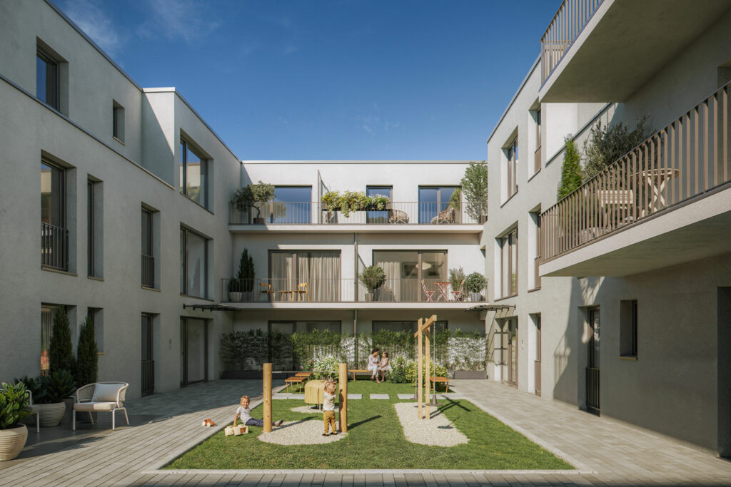 Zur Ausstattung gehören eine Tiefgarage mit 18 Stellplätzen, zwei Aufzugsanlagen sowie eine gemeinschaftliche Spielfläche im ruhigen Innenhof. Das vollständig barrierefrei konzipierte Wohnhaus bietet durchdachte Grundrisse, die sich ideal für die Vermietung an Singles, Paare und junge Familien eignen.